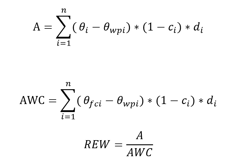 i die Schichtdicke in mm ist. AWC ist die pflanzenverfügbare Wasserspeicherkapazität des Bodens, Θ